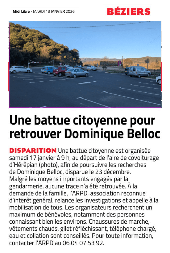 Une battue citoyenne pour retrouver Dominique Belloc