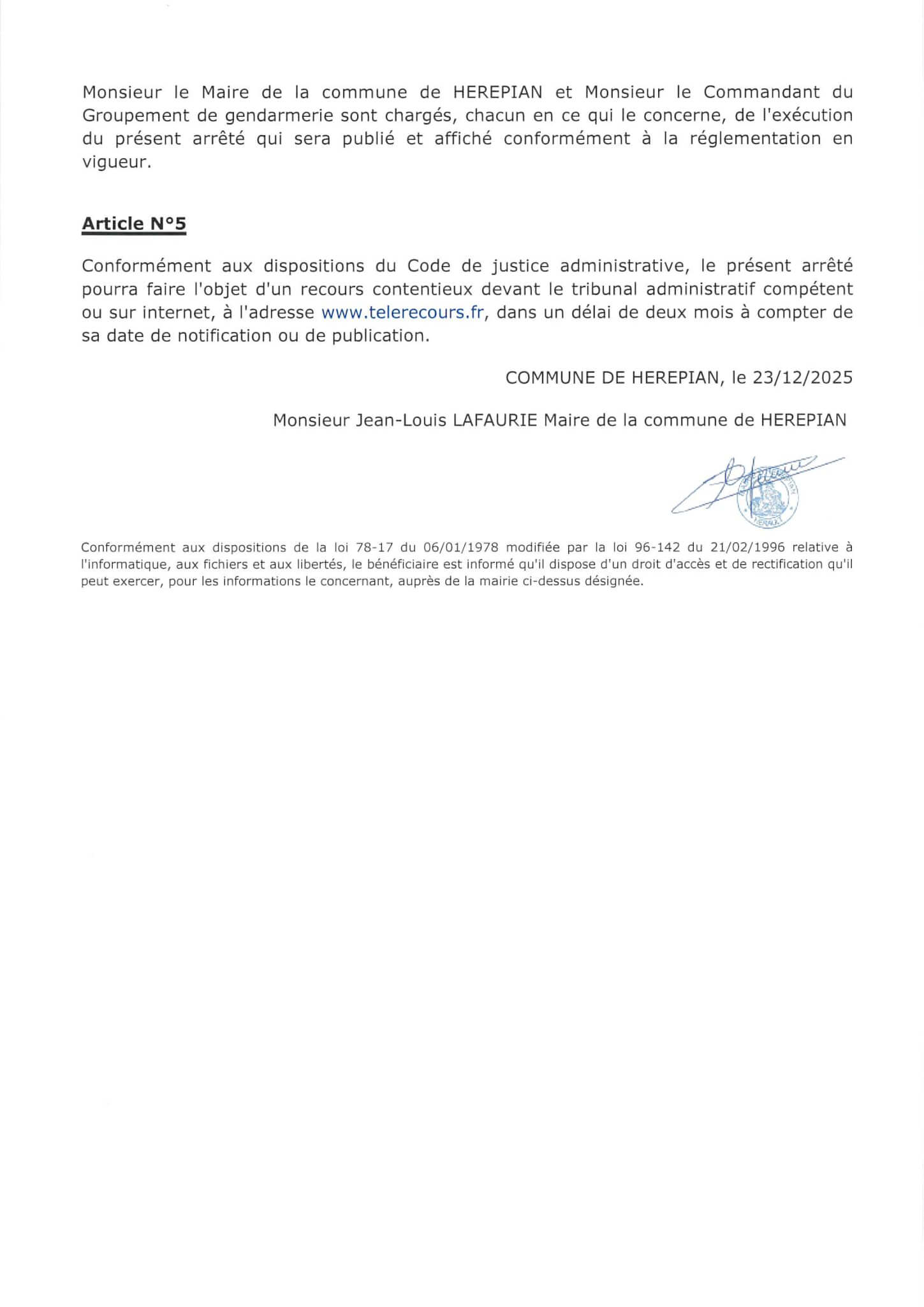 Accueil » Actualité » Arrêté municipal de circulation et de stationnement – Rue de l’Ancien Courrier- 13.01.2026
