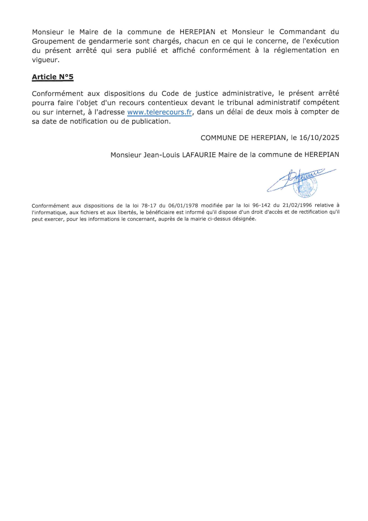 Arrêté municipal stationnement – Allée du Rieu Pourquié – Lun. 20.10.2025