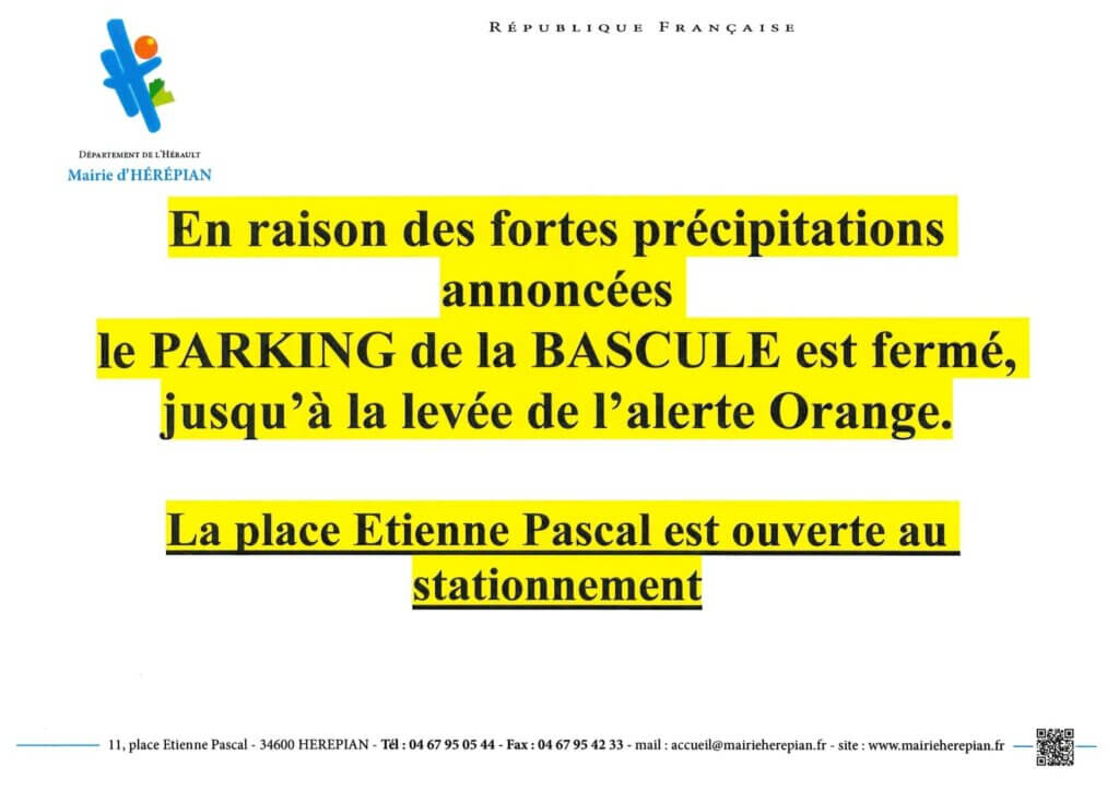 Parking de la Bascule – Alerte Orange 27.08.2025