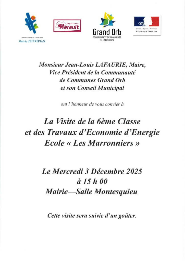 Visite de la 6ème classe et des travaux d’économie d’énergie école des Marronniers – Mer. 3.12.2025