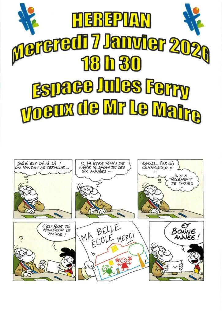 À l’occasion de la nouvelle année, Monsieur le Maire, les membres du Conseil municipal et l’ensemble des agents communaux vous présentent leurs vœux. A cette occasion, la cérémonie des vœux se tiendra le mercredi 7 janvier 2026 à partir de 18h30 à l’Espace Jules Ferry.