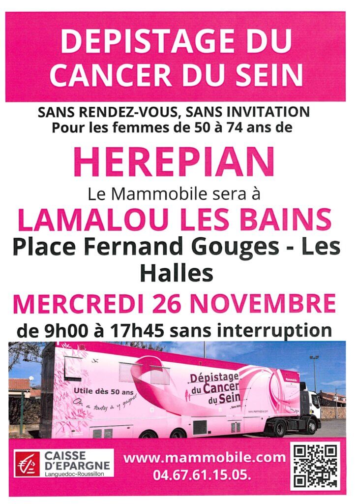 Dépistage du cancer de sein – Sam. 26.11.2025
